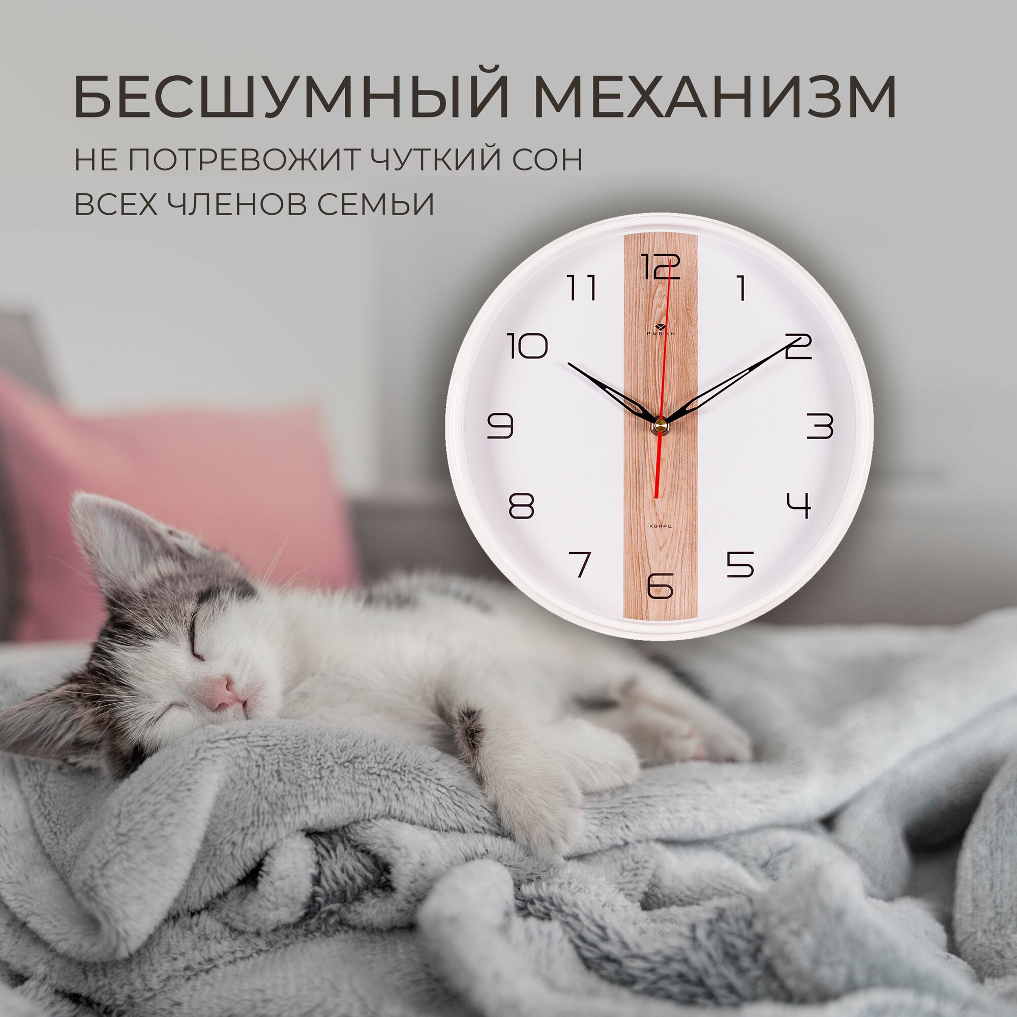 Часы настенные, кварцевые, белые, бесшумные, круглые, пластик, стекло, арабские цифры, Рубин