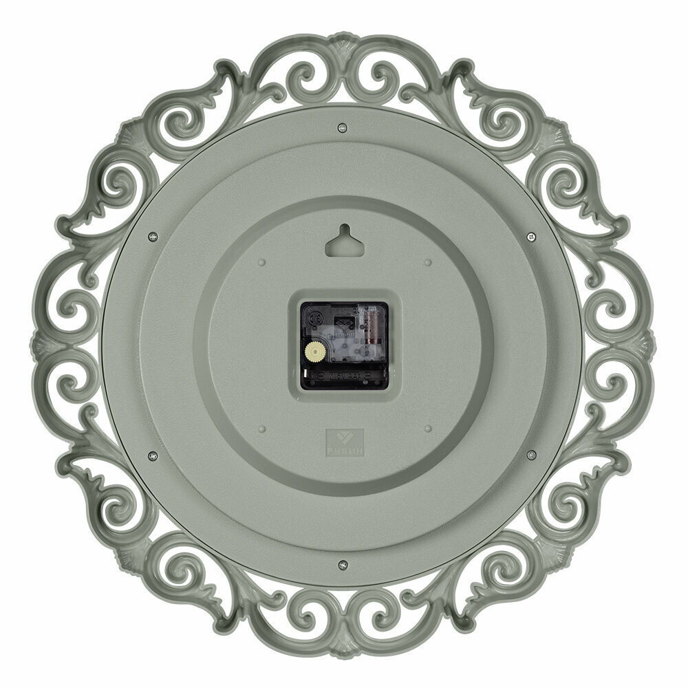 Настенные часы Рубин, ажурные, оливковый с серебром, кварцевые, пластик, арабские цифры,