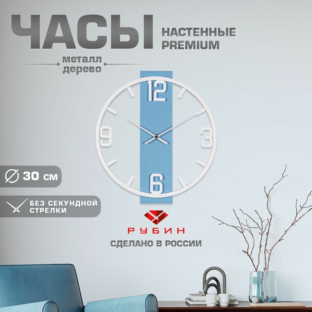 Рубин Часы настенные круглые 45,5 см, часы на стену большие бесшумные