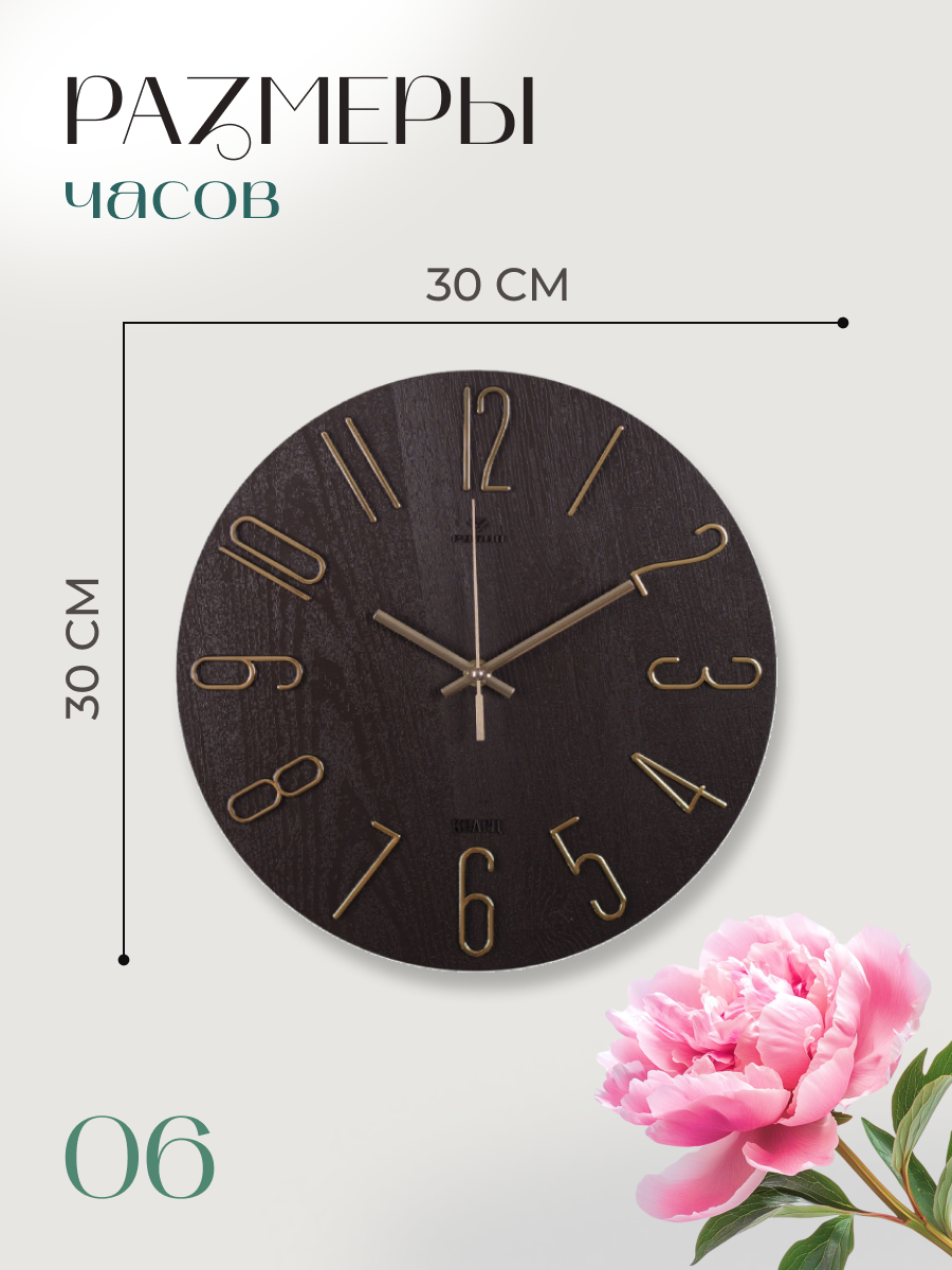 Часы настенные интерьерные с бесшумным механизмом декор для интерьера Рубин 30 см
