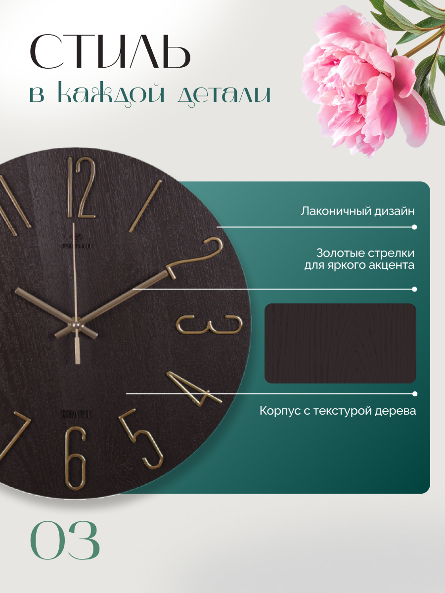 СохранитьЧасы настенные бесшумные Рубин цвет коричневый, на кухню диаметр 30 см интересное: