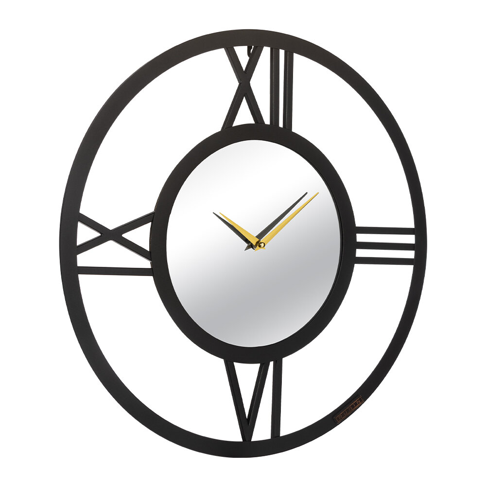 Купить Часы настенные КЛАССИКА из металла, d=50 см, открытая стрелка, черный+ зеркало 5601-001
