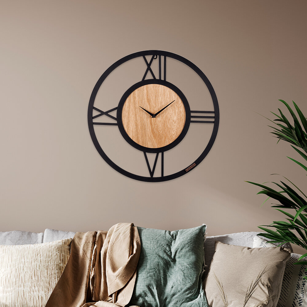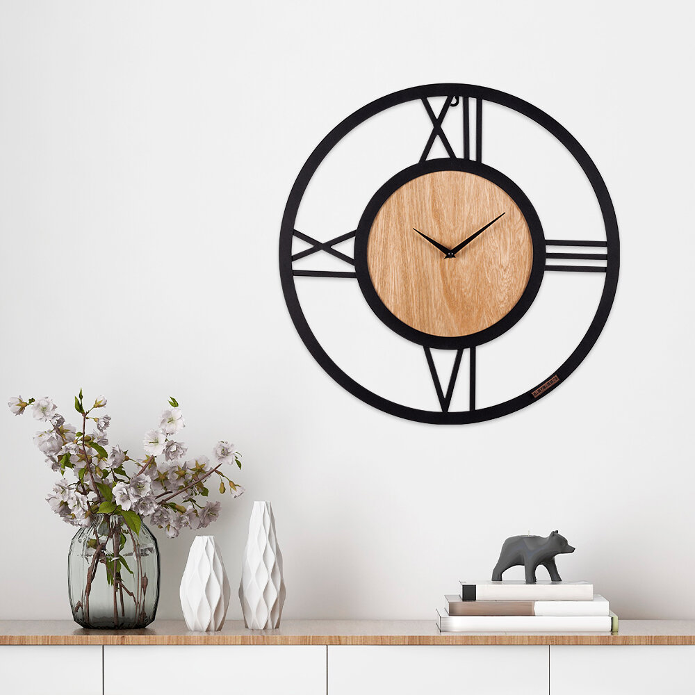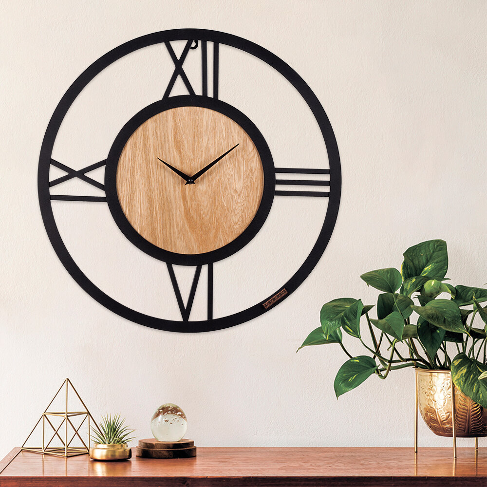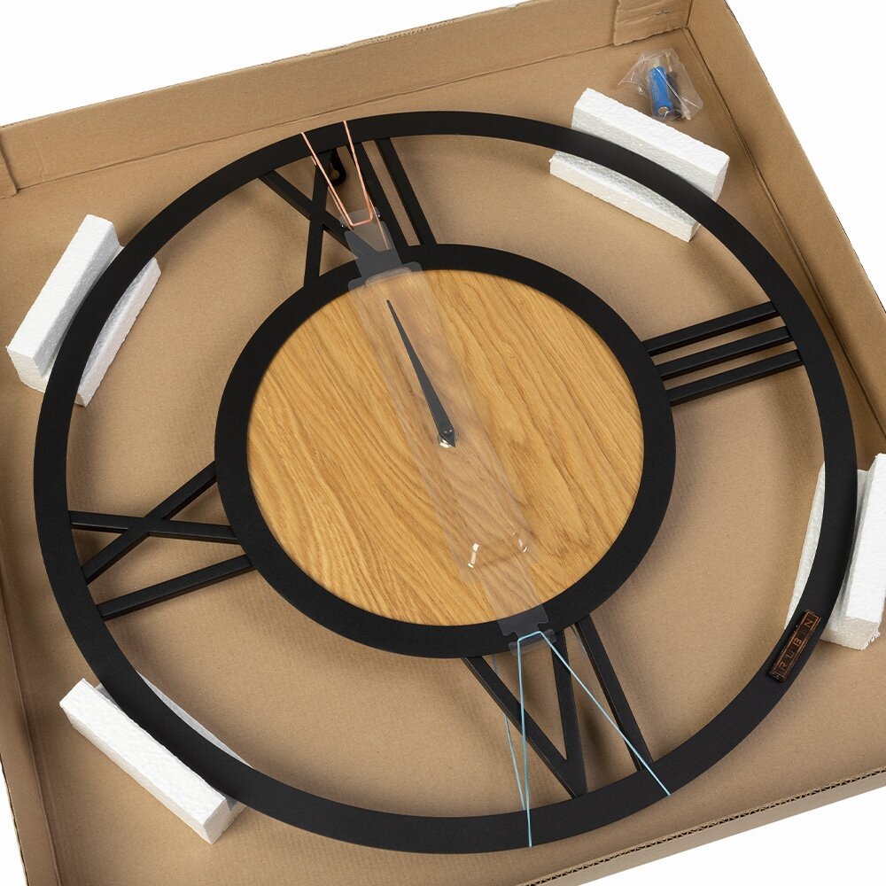 Купить Часы настенные КЛАССИКА из металла, d=50 см, открытая стрелка, черный+ дерево 5601-002