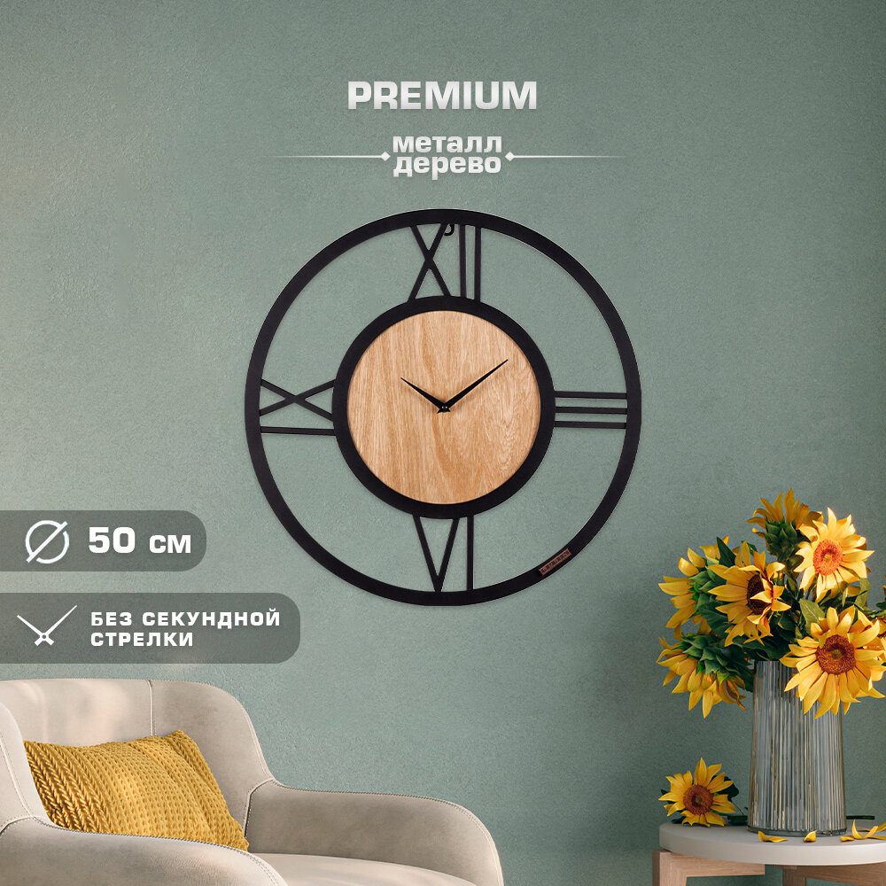 СохранитьЧасы настенные КЛАССИКА из металла, d=50 см, открытая стрелка, черный+ дерево 5601-002 интересное: