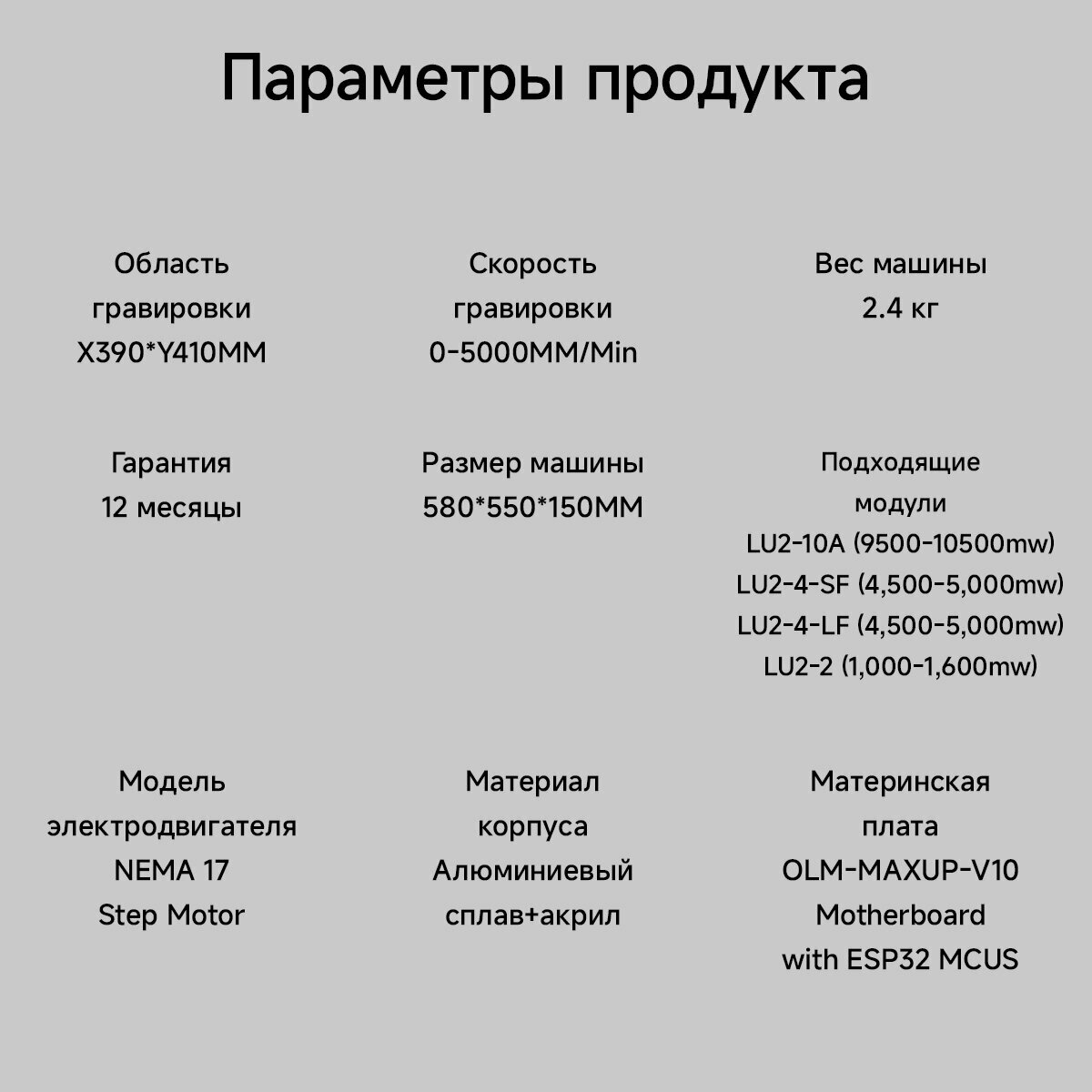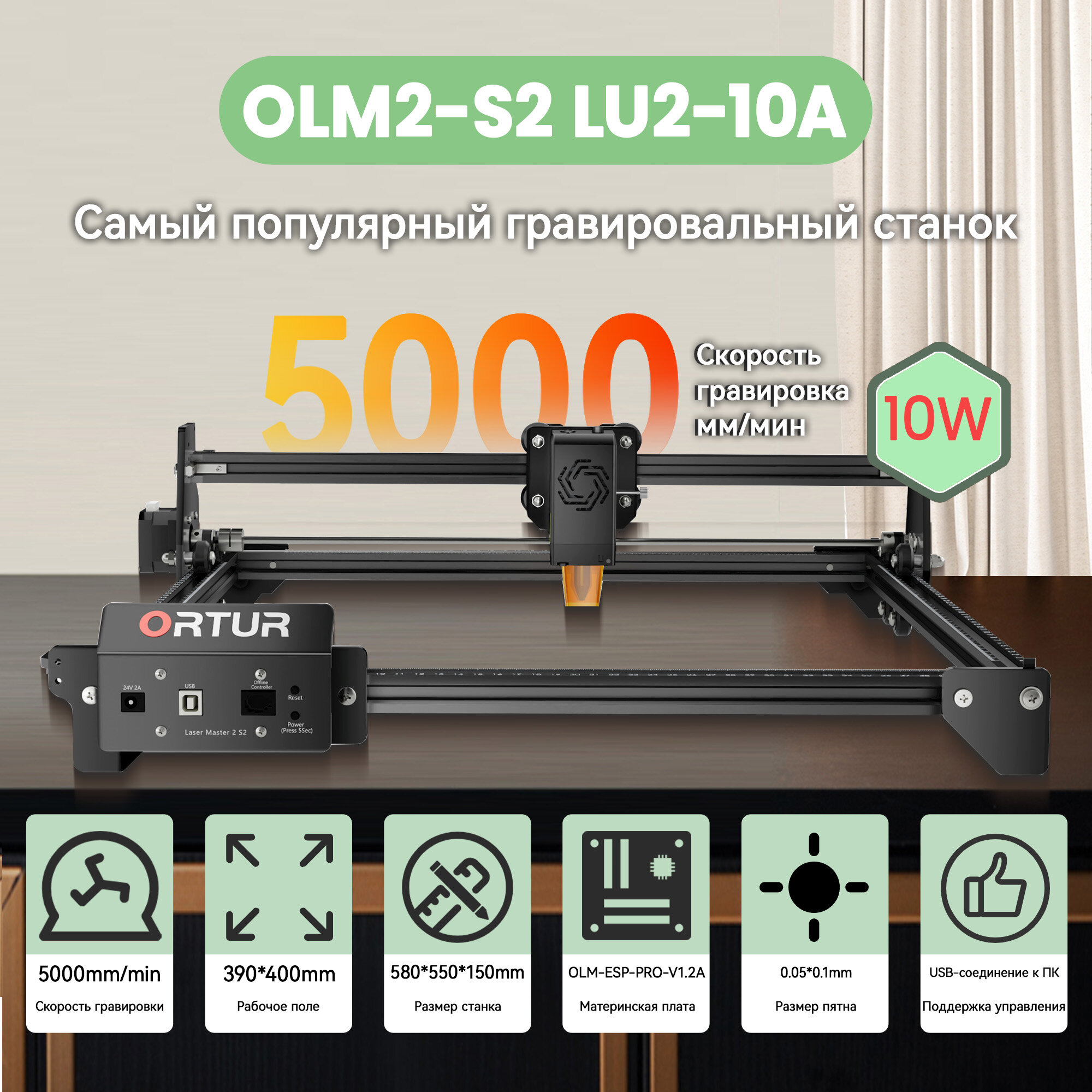 Лазерный гравер Ortur Master2 S2, мощность лазера 10Вт,390*410mm рабочое поле, скорость 5000мм/мин интересное: