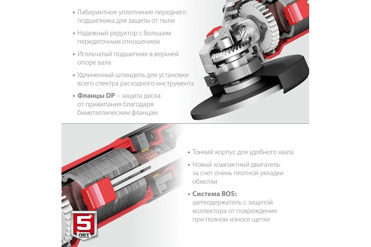 | Особенности конструкции | антивибрационная система / блокировка кнопки включения / двуручная / дополнительная рукоятка / Защитный кожух / регулировка положения кожуха без инструмента / фиксация шпинделя |