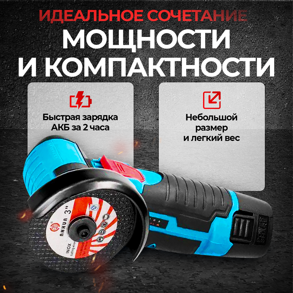 Мини УШМ аккумуляторная, Болгарка 19500об/мин 2 акб, 19500 об/минуту