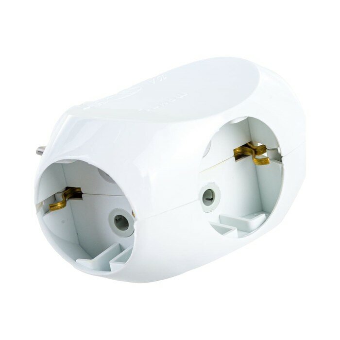 Тройник для розетки электрический с заземлением 16А, белый