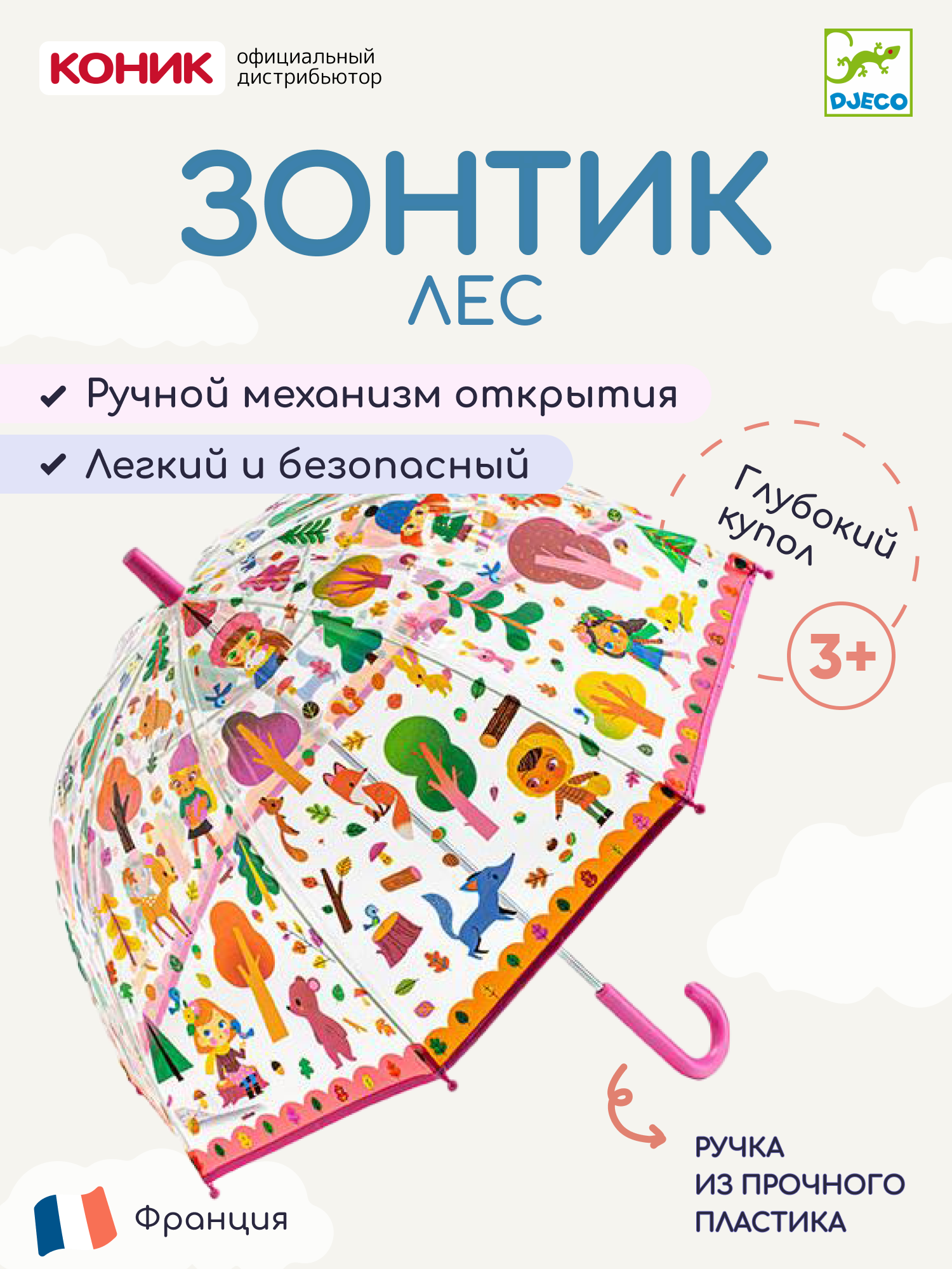 Зонт-трость DJECO, розовый, белый, бесцветный