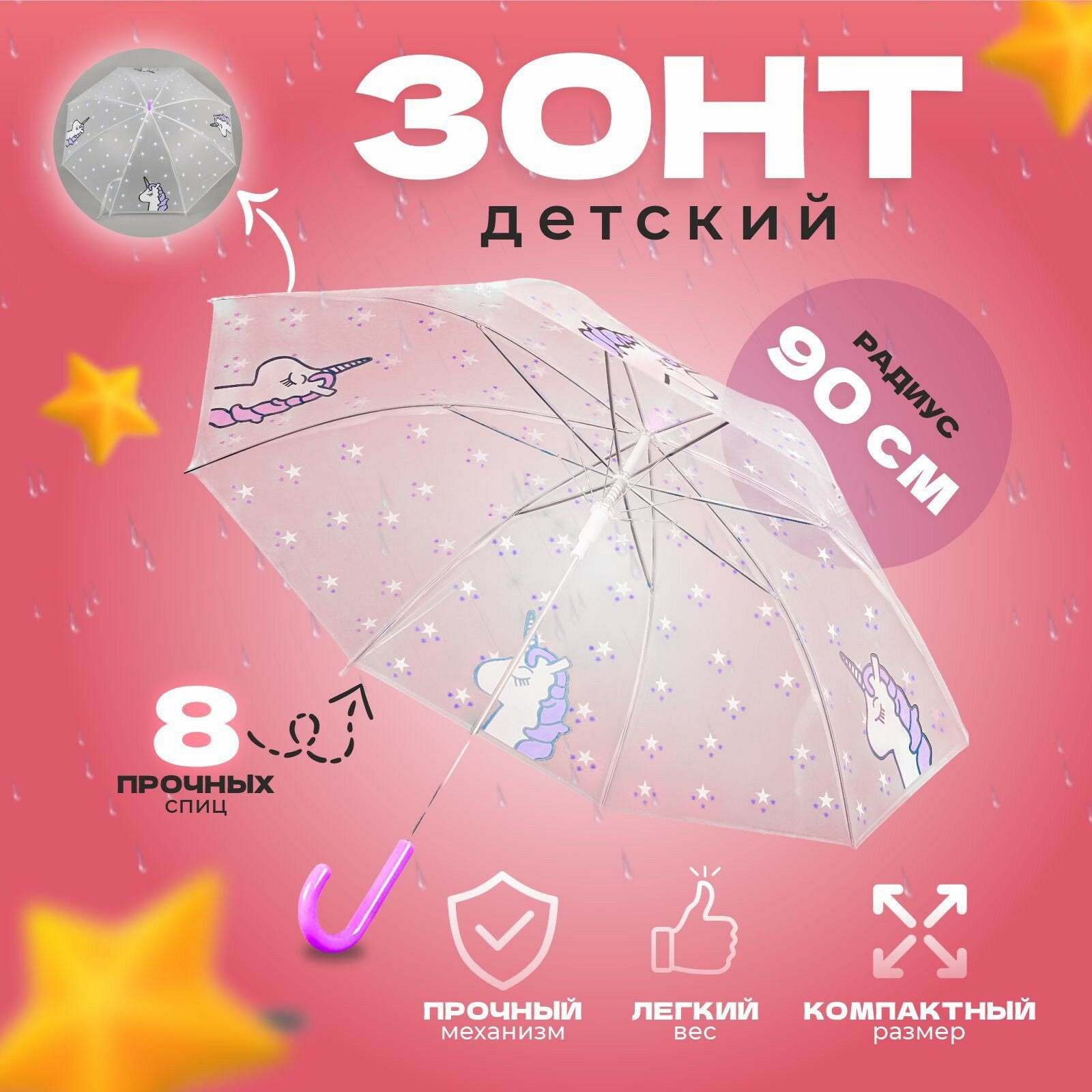 Зонт детский "Единорог", фиолетовый, d=90 см
