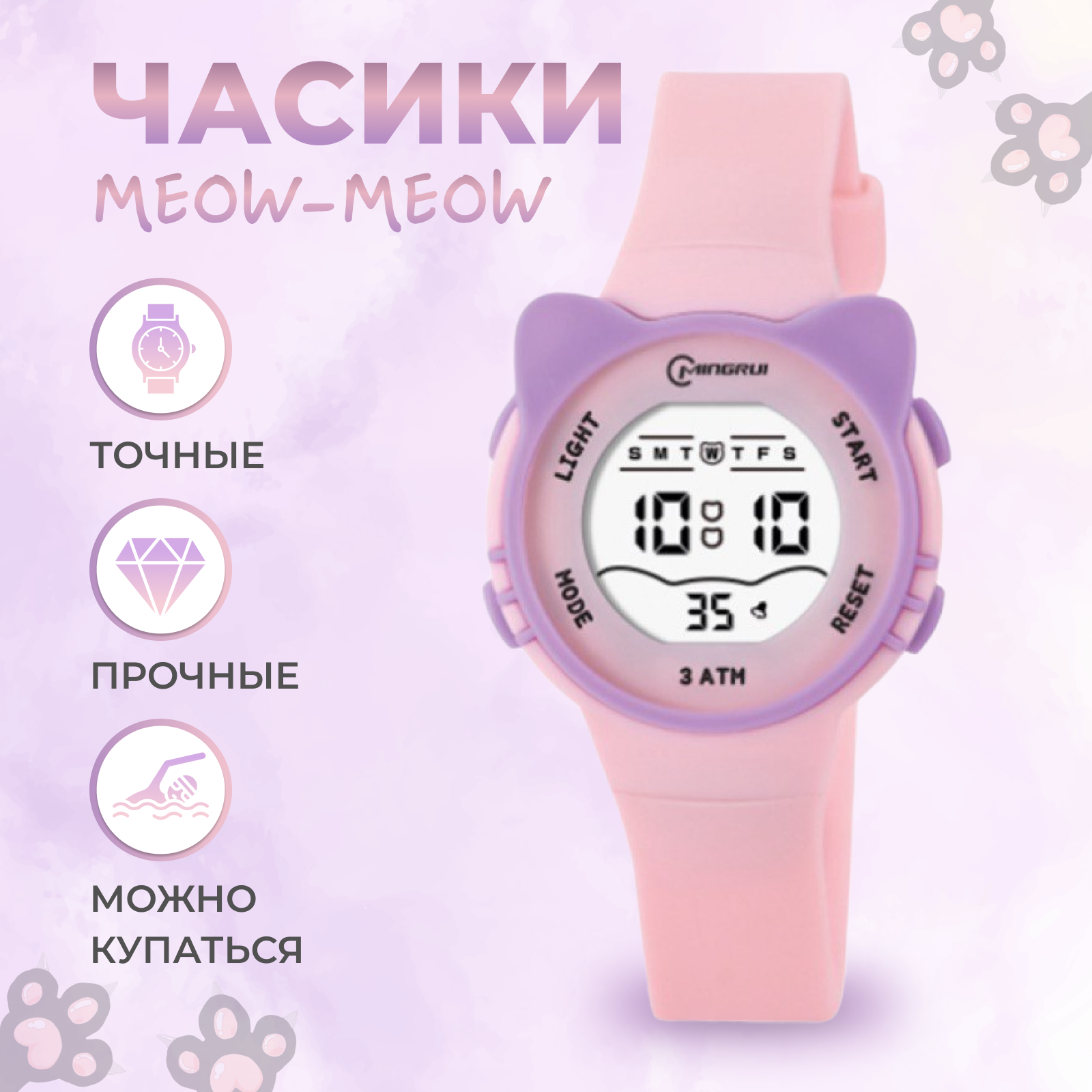 Детские часы наручные электронные розовые для девочки. Необычные водонепроницаемые круглые часики на руку для детей.