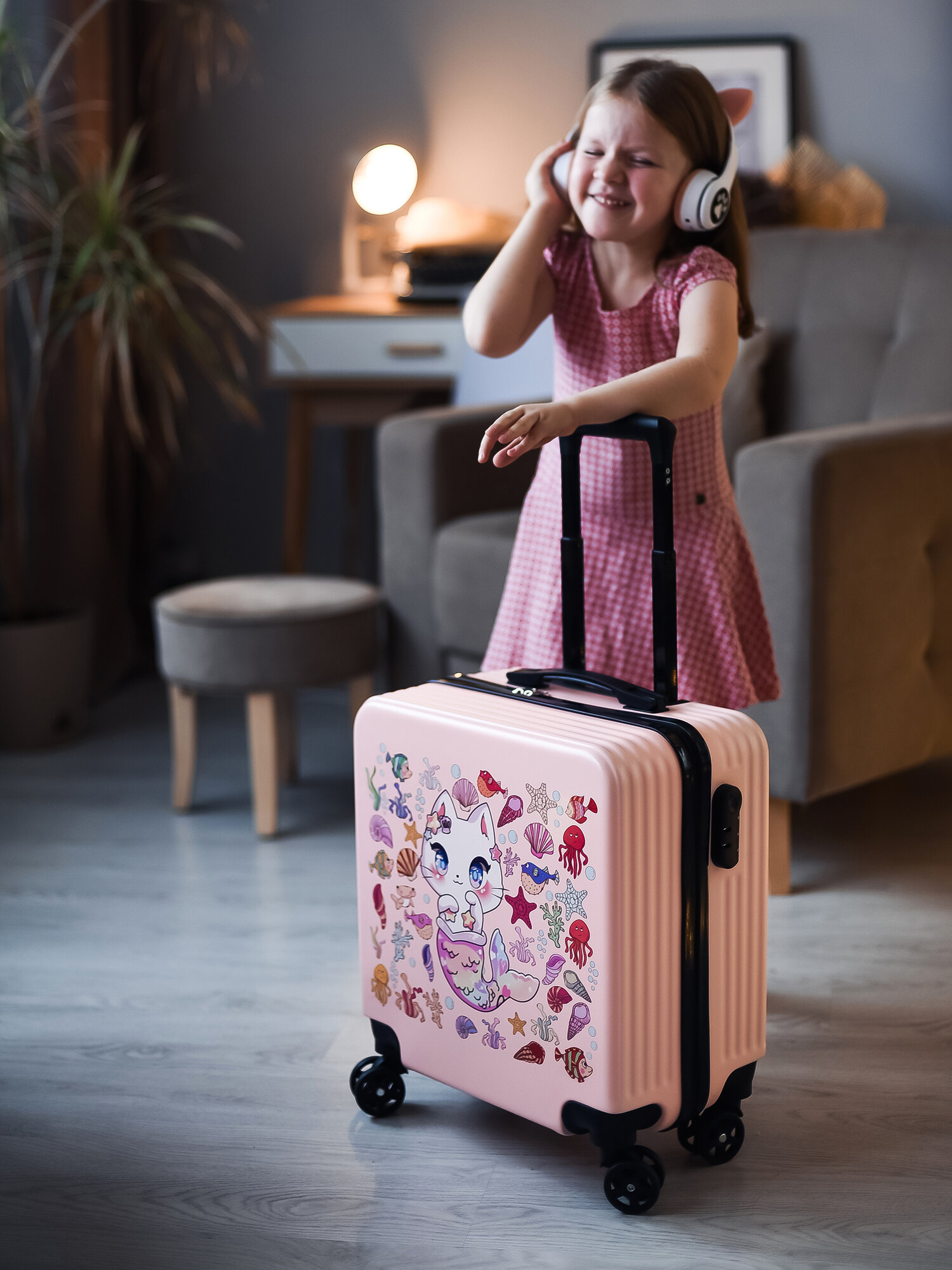 Чемодан дет. Котик 20", 35х20х40, отд. на молнии, 4 колеса, розовый
