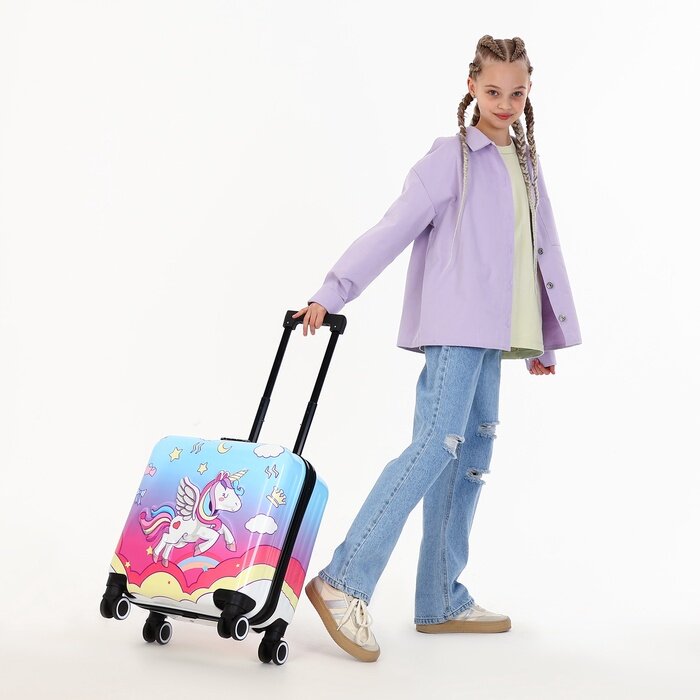 Чемодан детский 16", отдел на молнии, 2 колеса, цвет голубой