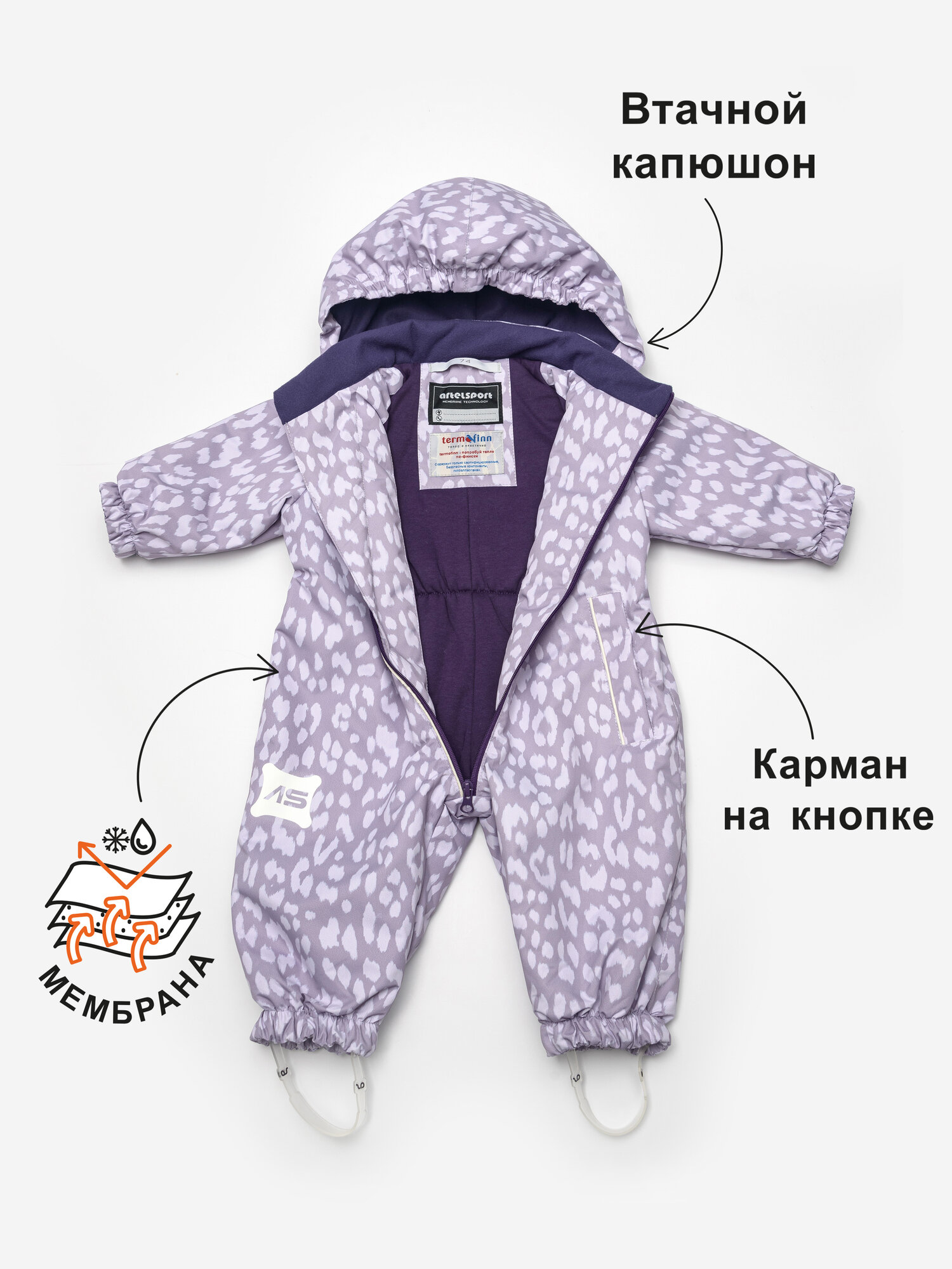 Комбинезон мембранный ARTEL пинки демисезонный р.74 leo-lavanda