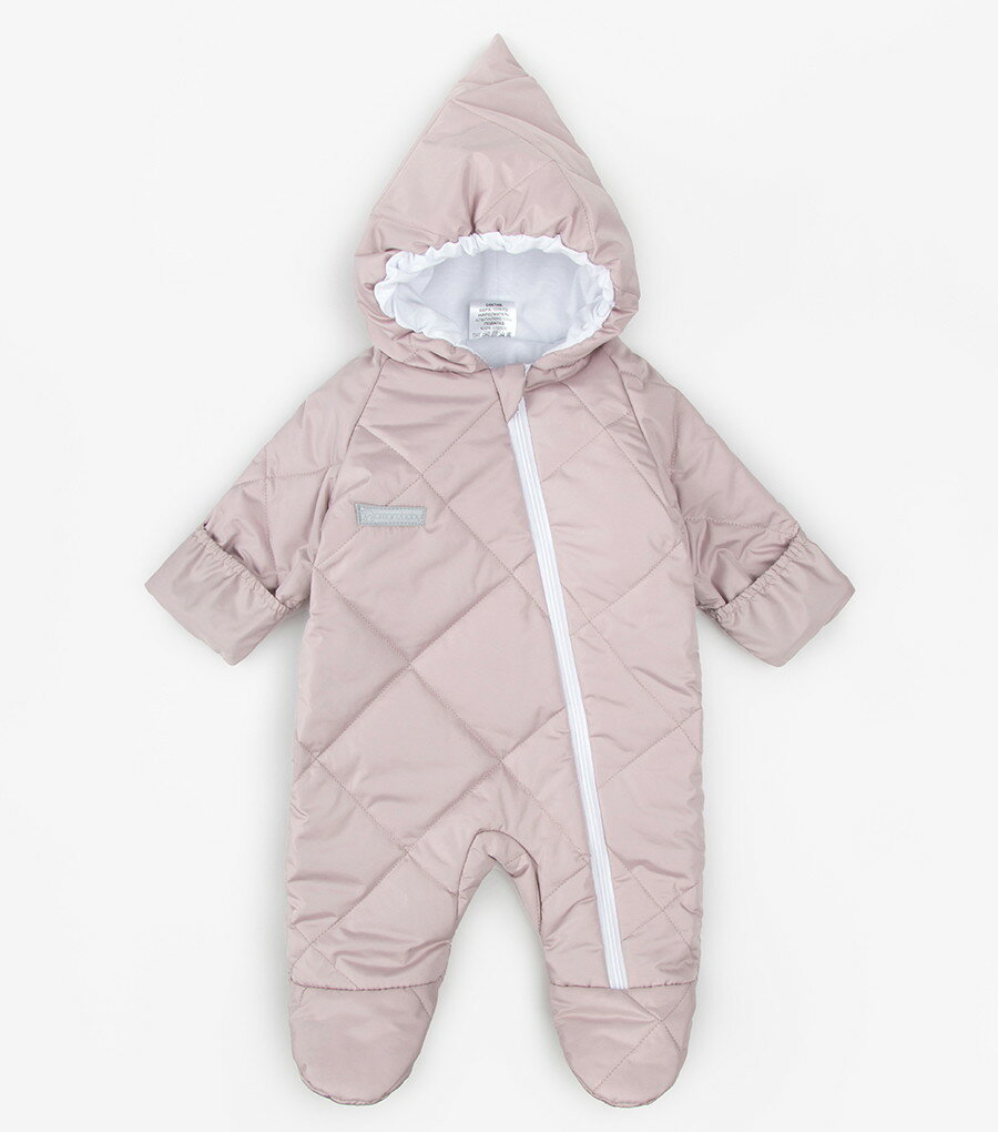 Комбинезон детский демисезонный стеганый с закрытыми ножками Amarobaby ELF, лавандово-серый, размер 62