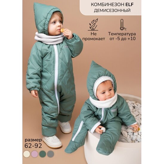 Комбинезон детский демисезонный стеганый с закрытыми ножками Amarobaby ELF, мятный, размер 62