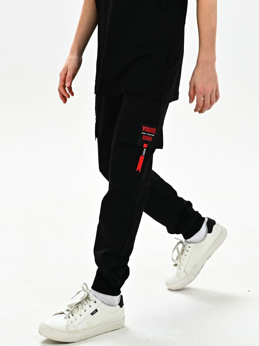 Брюки спортивные черные подростковые штаны джоггеры, 134