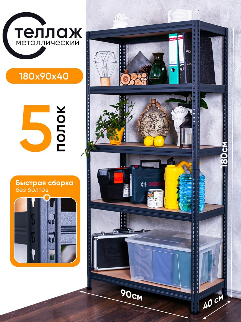 Купить Стеллаж на 5 полочек на балкон, в гараж, Промет 180х90х40, черный