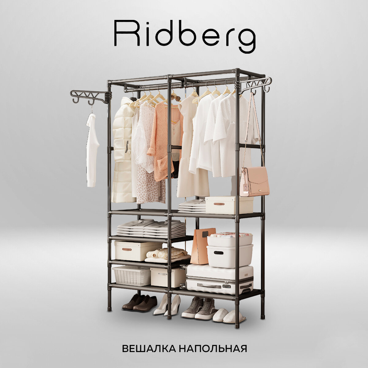 Вешалка напольная для одежды Ridberg металлическая прихожая, гардеробная система в коридор