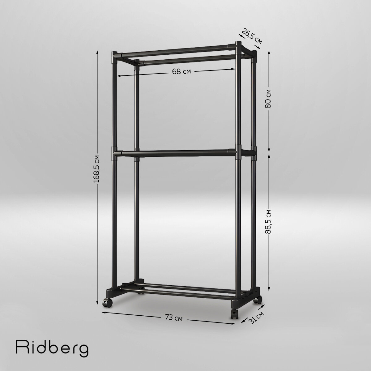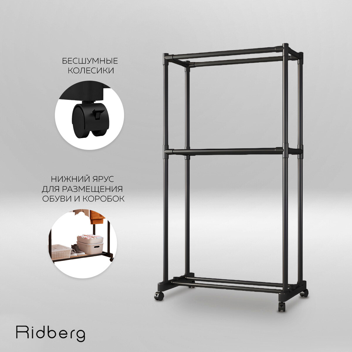 СохранитьВешалка Ridberg Black, напольная, рейл двойной, черная, металлическая, 170 см интересное: