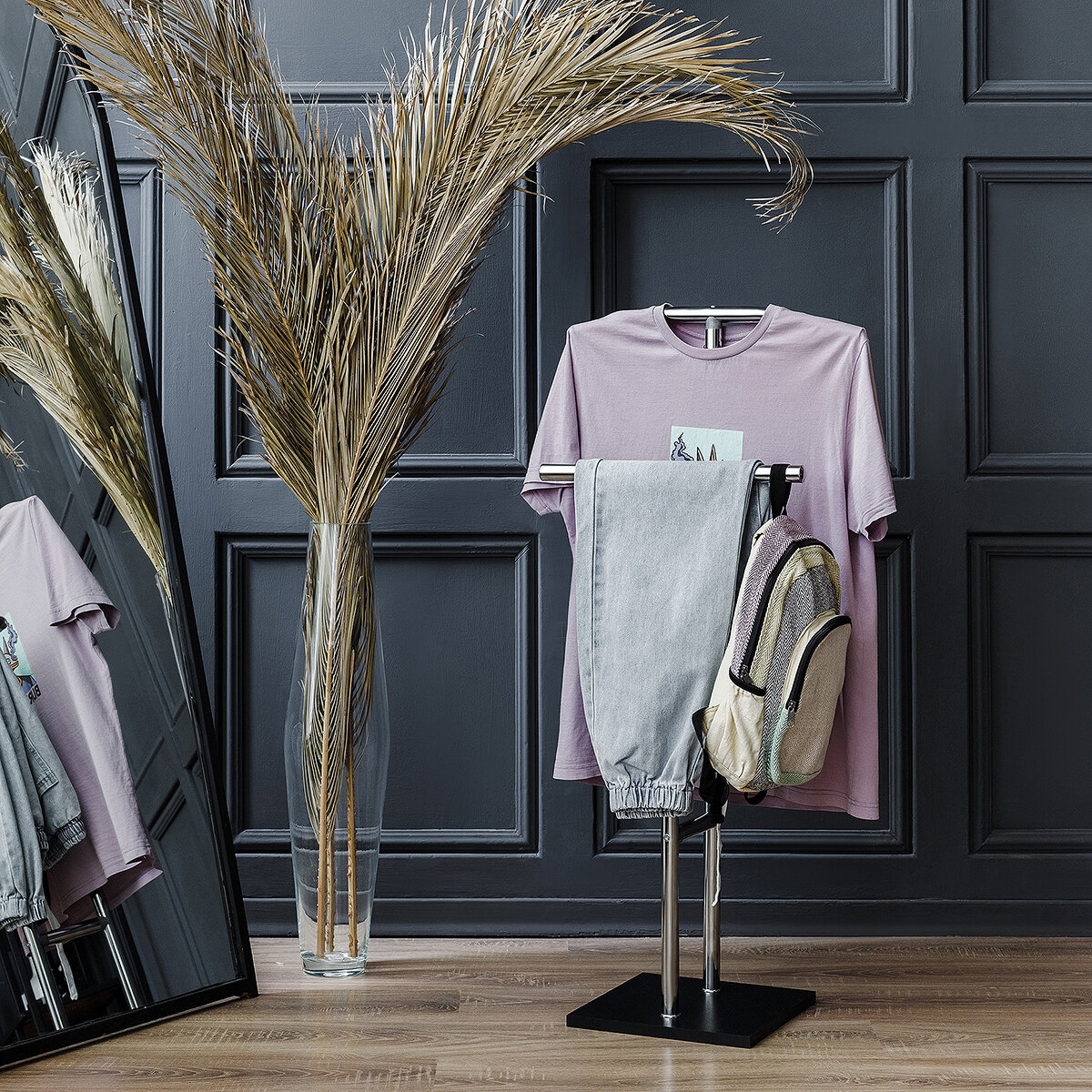 Вешалка напольная – Металлическая ЛОФТ для одежды в спальню, прочная и устойчивая черная интересное: