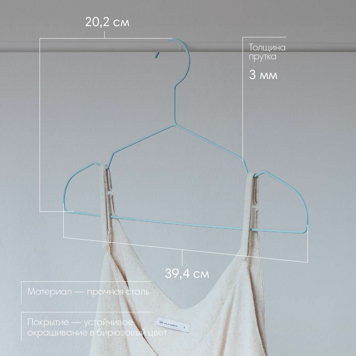 Набор вешалок Biruza 3 шт, 39,4х0,28х20,2 см, цвет бирюзовый интересное:
