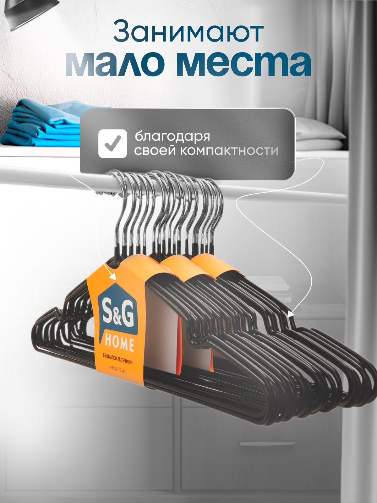 СохранитьВешалка для одежды, S&G Home, плечики металлические 40 см, набор 20 шт, черный интересное:
