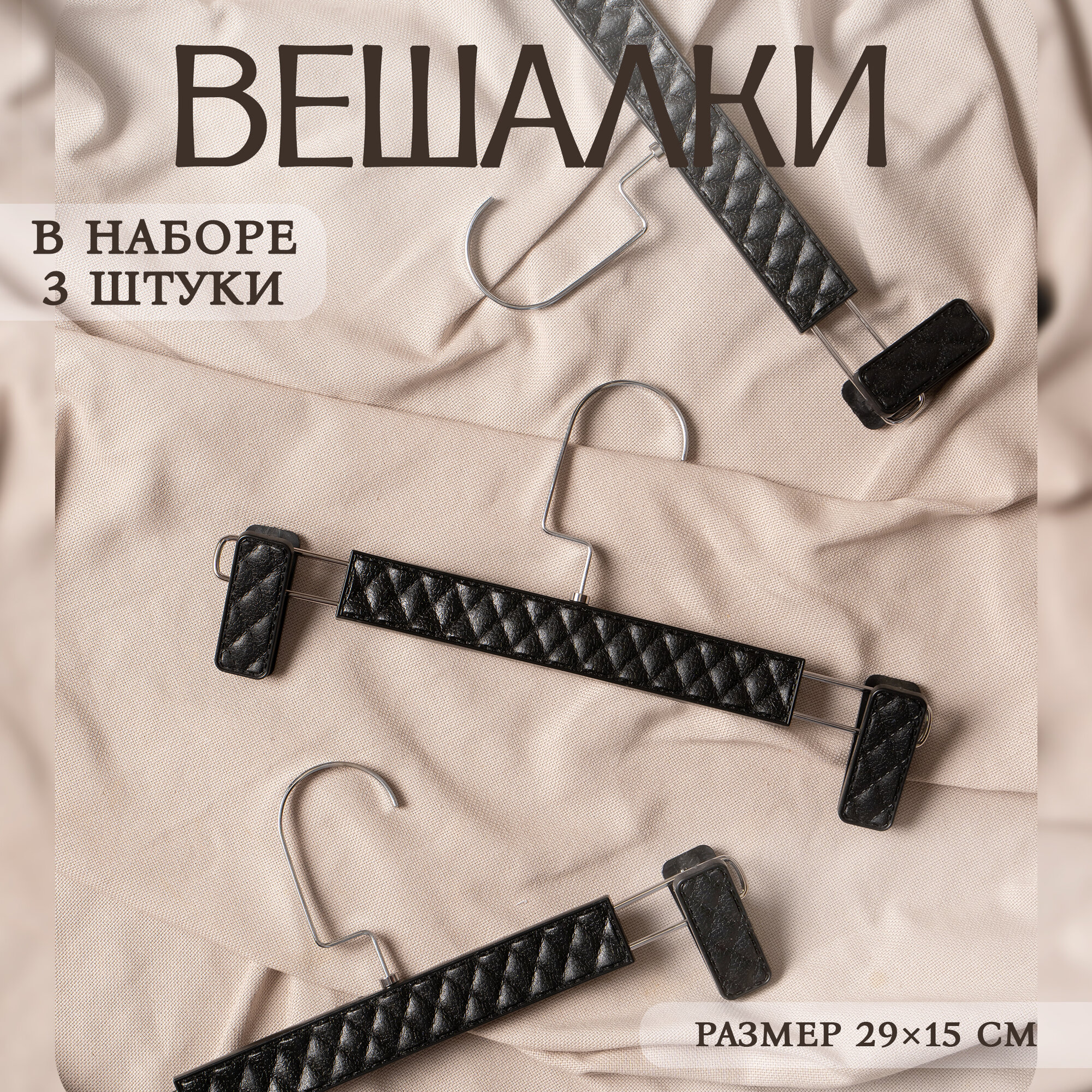 Вешалки для брюк и юбок LaDо́m Eliot, 29×15 см, 3 шт, с зажимами, цвет чёрный