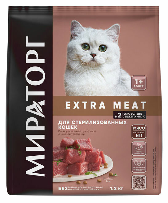 Сухой корм Мираторг EXTRA MEAT для кастрированных котов и стерилизованных кошек с нежной телятиной (1,2 кг)