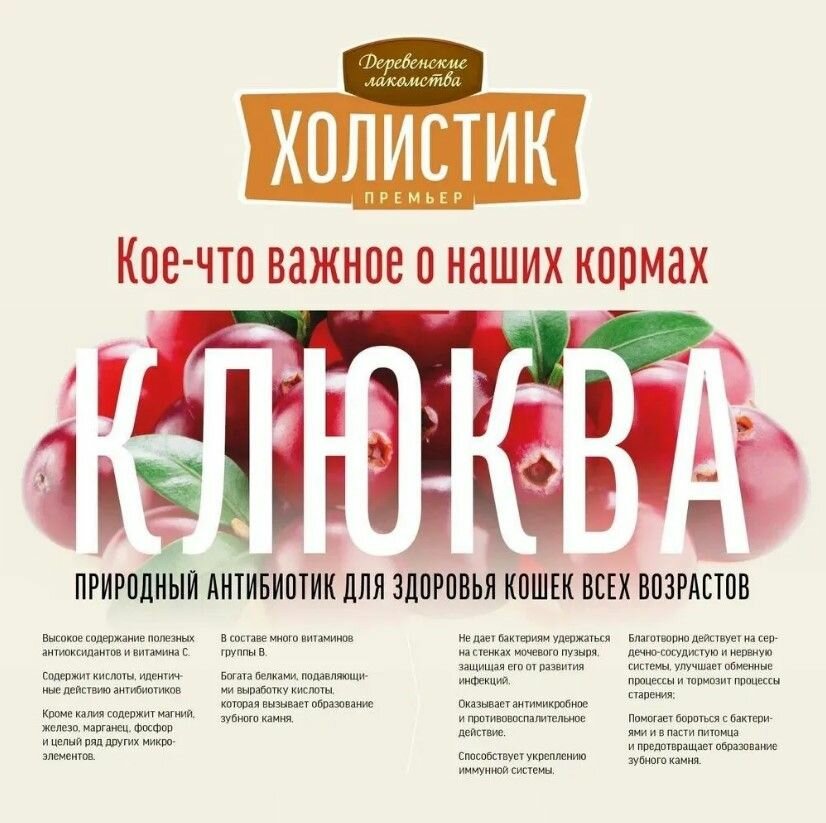 Деревенские Лакомства Холистик Премьер кошки поддержка иммунитета Говядина 2кг