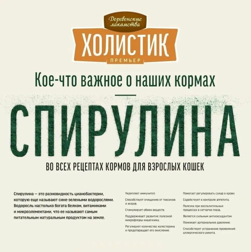 2кг+2кг Сухой полнорационный корм деревенские лакомства холистик премьер для поддержки иммунитета кошек с говядиной