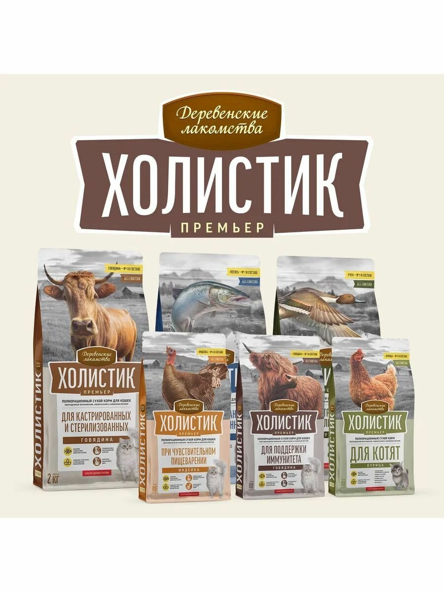 2кг+2кг Сухой полнорационный корм деревенские лакомства холистик премьер для поддержки иммунитета кошек с говядиной