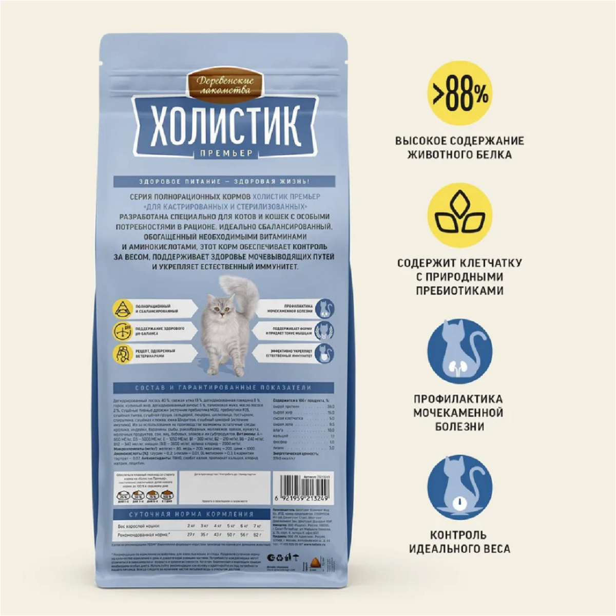 Деревенские лакомства холистик премьер 400 г полнорационный сухой корм для кастрированных и стерилизованных кошек с уткой
