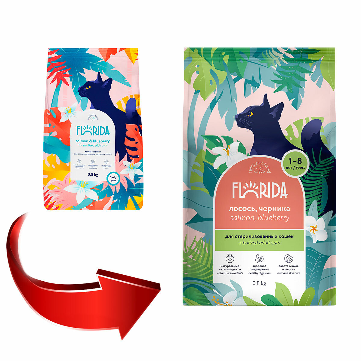 FLORIDA для взрослых кошек кастрированных котов и стерилизованных кошек с лососем и черникой (0,8 кг)