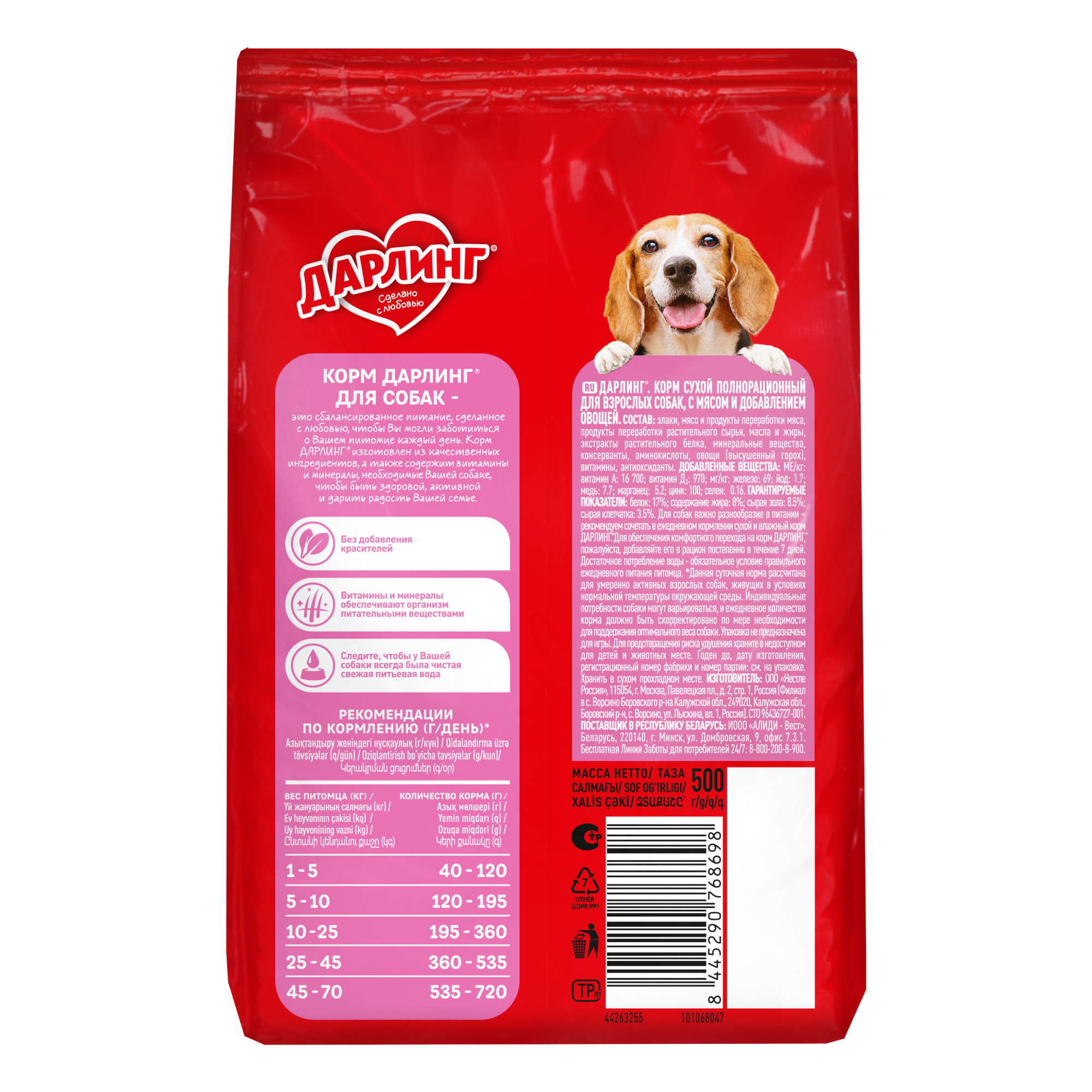 Купить Дарлинг 500 г сухой корм для взрослых собак с мясом и овощами