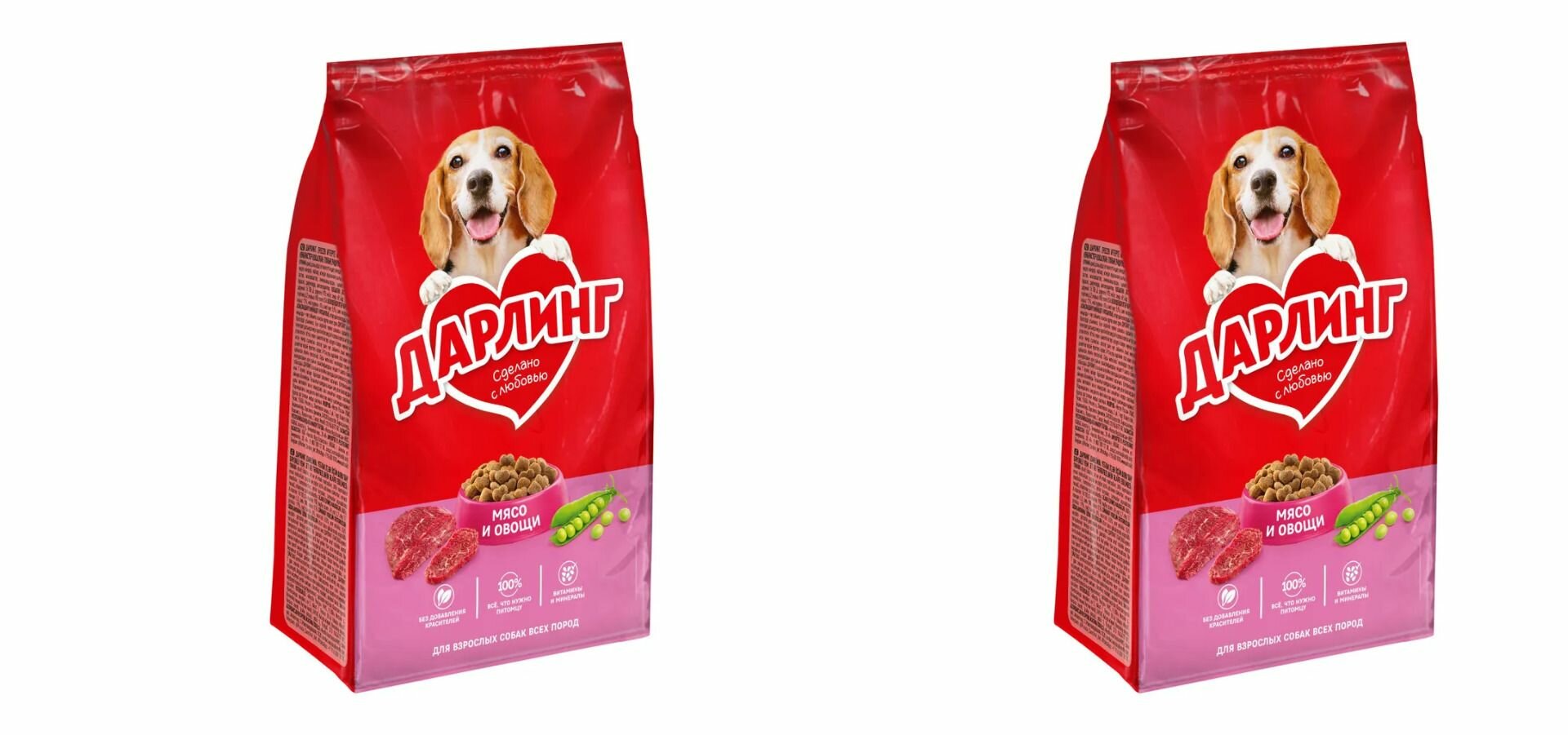 Сухой корм Дарлинг 2кг х 2шт, мясо и овощи, для собак любых пород, Darling