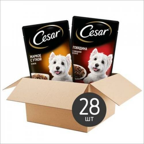Корм для собак Cesar (набор) жаркое с уткой в желе, говядина с овощами в соусе 2 уп. х 14 шт. х 85 г интересное: