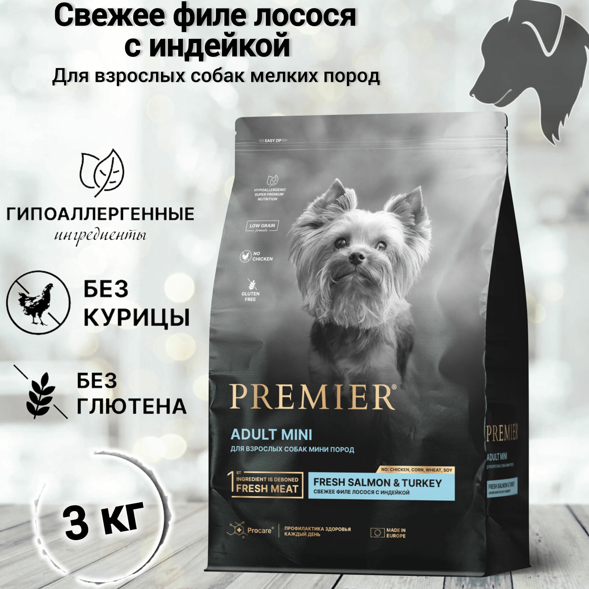Купить Premier Dog Adult Mini Salmon&Turkey Сухой корм для собак мелких пород, лосось с индейкой, 3 кг