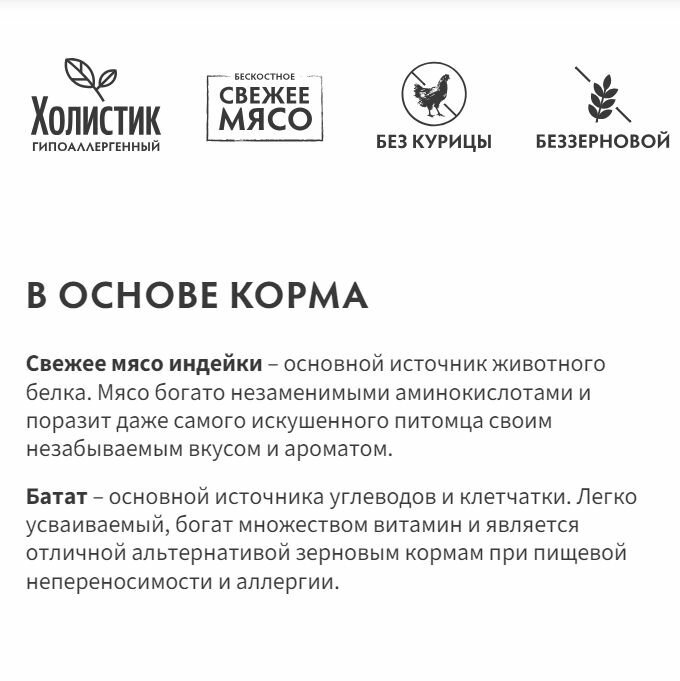 Сухой беззерновой корм Grandorf Fresh свежее мясо индейки с бататом для собак мелких пород, с живыми пробиотиками. Для особо аллергичных собак с чувствительным пищеварением, 3 кг