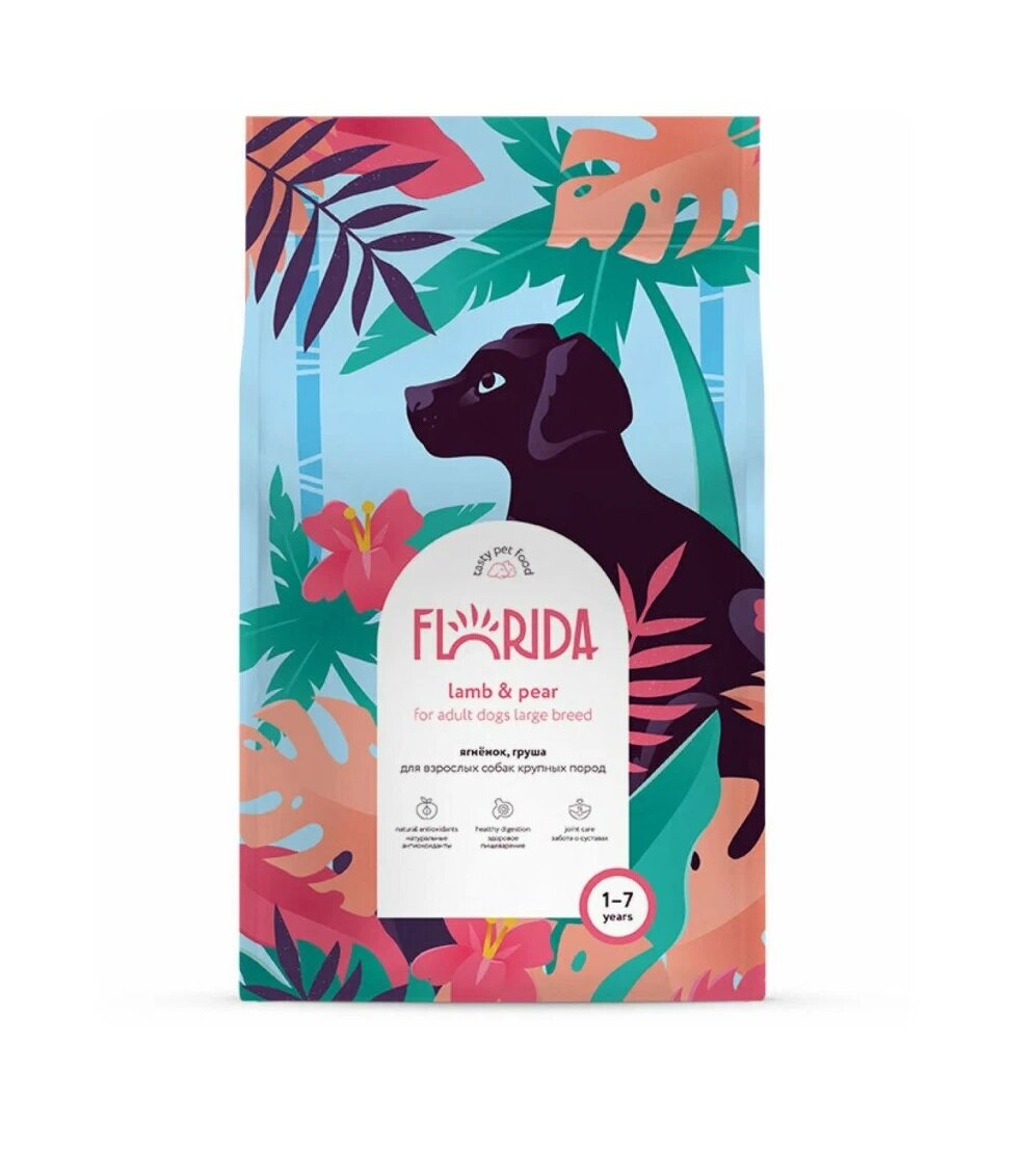 Florida сухой корм для взрослых собак крупных пород с ягненком и грушей 1кг
