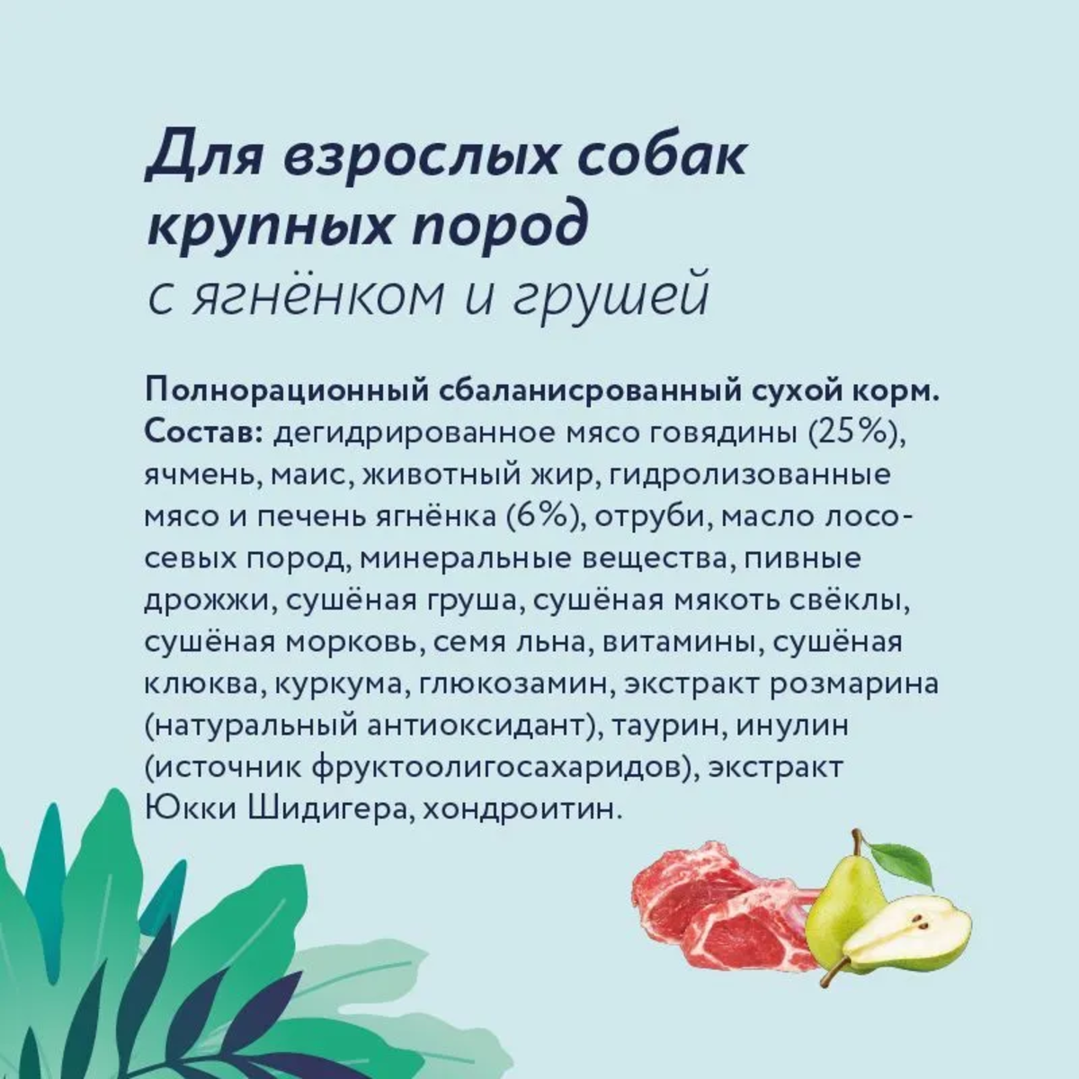 СохранитьКорм сухой Florida для взрослых собак крупных пород с ягненком и грушей 12+2, 14кг интересное: