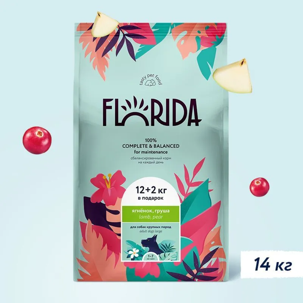 FLORIDA для взрослых собак крупных пород с ягненком и грушей (12 + 2 кг)