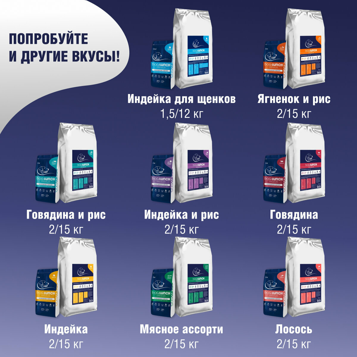 Dog Lunch Premium Корм сухой для собак средних и крупных пород с Индейкой 15кг