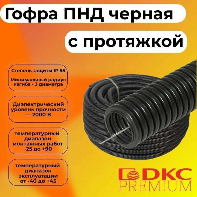 Гофра для кабеля ПНД D 25 мм с протяжкой черная 5 м.DKC Premium.