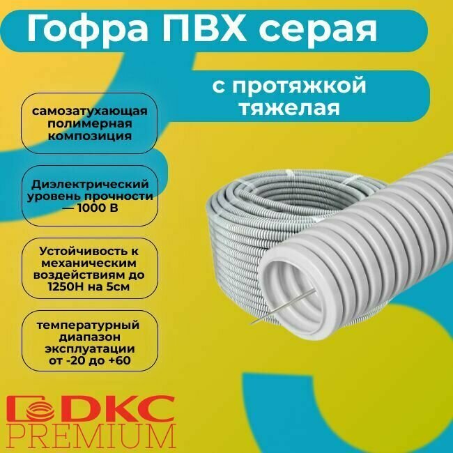 Гофра для кабеля ПВХ с протяжкой тяжелая серая DKC Premium D32 - 15м..