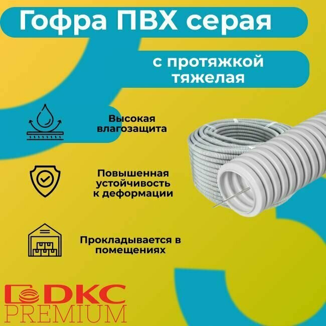 СохранитьГофра для кабеля ПВХ с протяжкой тяжелая серая DKC Premium D32 - 20м. интересное: