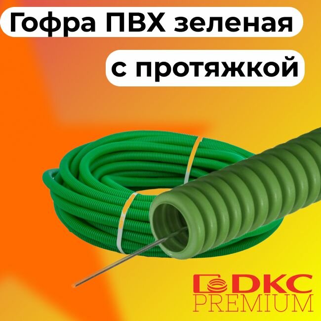 Гофра для кабеля ПВХ D 20 мм с протяжкой зеленая 15 м.DKC Premium.