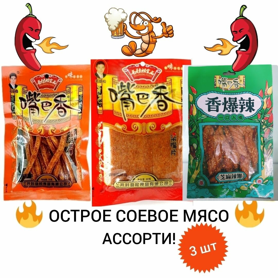 Ассорти из острого соевого мяса , острая закуска 3шт