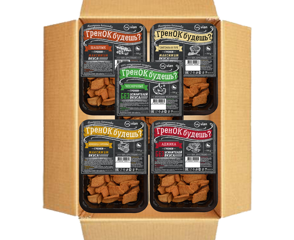 Купить Гренки ржано-пшеничные микс (чеснок, холодец и хрен, сметана и лук, аджика, шашлык) гренок будешь, 5 шт. по 100 г