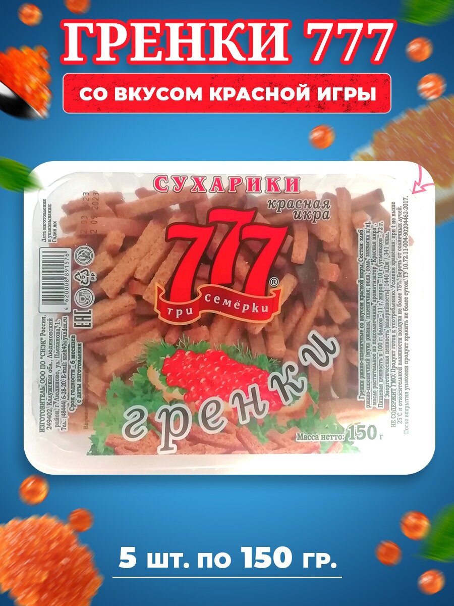 Купить Сухарики гренки 777 со вкусом красной икры (контейнер), 5 шт по 150 гр